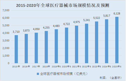 医疗器械市场是全球最具潜力的新兴市场,市场需求为产品普及需求与升级换代需求并存。随着全球人口自然增长、人口老龄化程度加剧,以及发展中国家经济增长,长期来看全球医疗器械市场将持续增长。