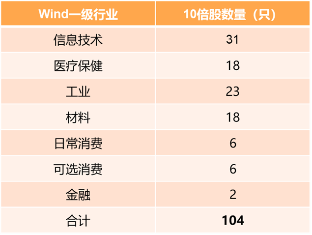 图4:过去10年10倍股行业分布