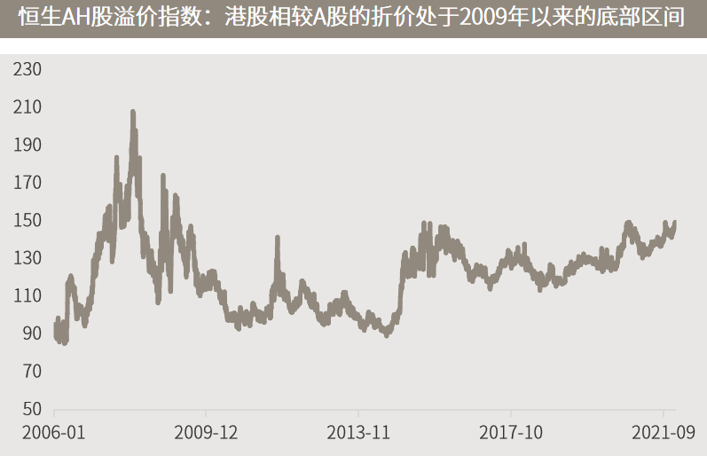 港股估值处于历史性低位,为港股红利策略打下坚实基础。截至2021年底,港股动态市盈率仅10.7倍,处于历史的底部区间;恒生AH股溢价指数为147,表面港股相较A股的折价处于2009年以来的底部区间。在今年市场对美联储加息预期不断抬升的背景下,低估值对海内外投资者的吸引力越发凸显。
