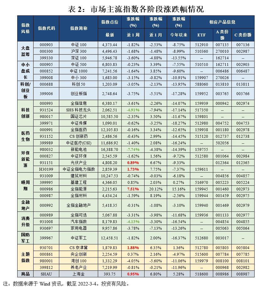 俄乌局势引发滞胀担忧。上周随着俄罗斯制裁的升级,大宗商品价格飙升强化了滞胀担忧,市场再陷调整。短期能源股的不确定性较高(俄乌战争进展),稳增长属于阻力较小的方向但数据验证的重要性开始提升。