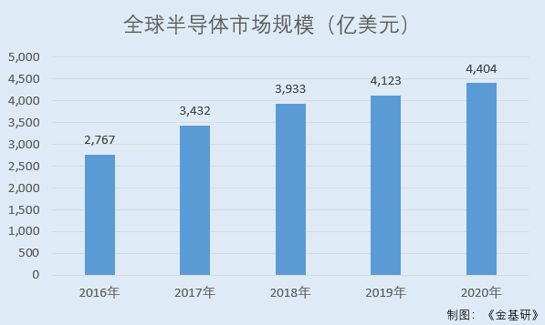 2016-2020年,全球半导体市场规模分别为2,767亿美元、3,432亿美元、3,933亿美元、4,123亿美元、4,404亿美元,复合增长率为12.32%。