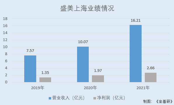 据东方财富Choice数据,2019-2021年,盛美上海的营业收入分别为7.57亿元、10.07亿元、16.21亿元,2020-2021年分别同比增长33.13%、60.88%。