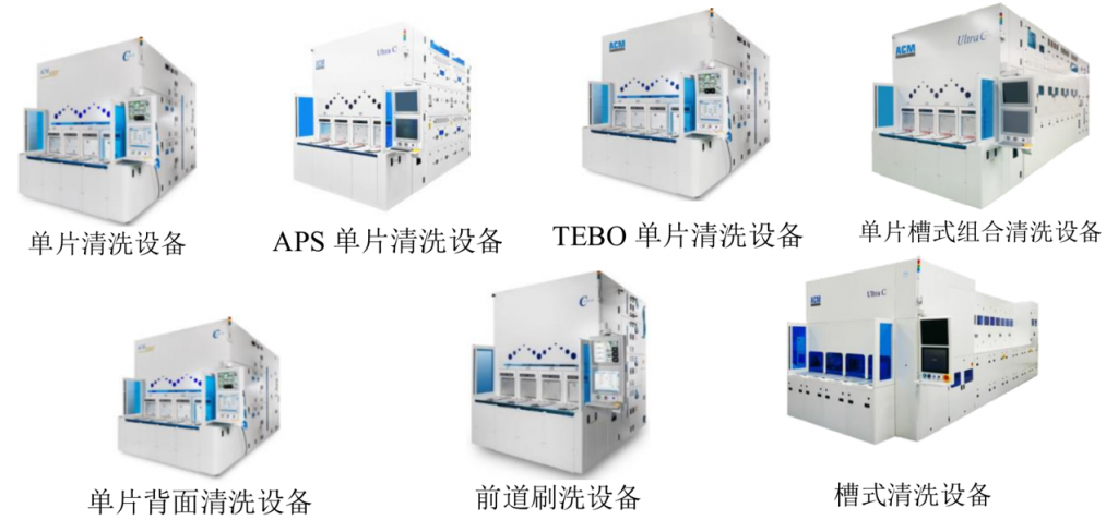 在半导体清洗设备方面,盛美上海先后开发了单片清洗设备、SAPS单片清洗设备、TEBO单片清洗设备、单片槽式组合清洗设备、单片背面清洗设备、前道刷洗设备、槽式清洗设备等清洗设备。目前,盛美上海的清洗技术及设备已经可以覆盖80%以上的清洗工艺。