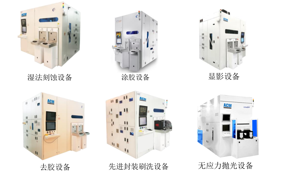 在先进封装湿法设备方面,盛美上海先后开发了湿法刻蚀设备、涂胶设备、显影设备、去胶设备、先进封装刷洗设备、无应力抛光设备。