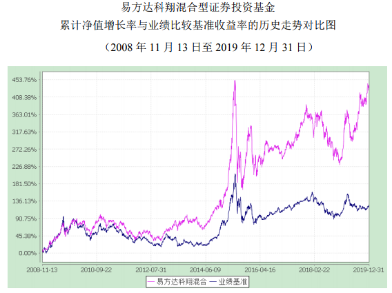 易方达科翔最大的亮点,是依托易方达基金公司强大的投研实力和历任基金经理出色的管理水平,该基金从2008年11月13日成立至今(截至2020年2月12日),涨幅达到了446.41%,远高于同期110%的沪深300涨幅。
