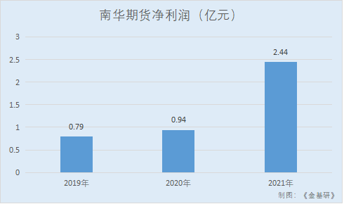 同期,南华期货的净利润分别为0.79亿元、0.94亿元、2.44亿元。值得一提的是,南华期货2021年净利润同比增长达158.67%。