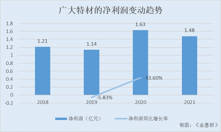同期,广大特材现实现的净利润分别为12,085.12万元、11,380.61万元、16,342.64万元、14,810.5万元,2019-2020年分别同比增长-5.83%、43.6%。