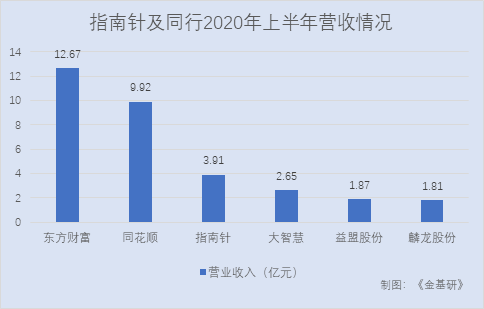 2020年上半年,指南针实现营业收入3.91亿元,同比增长7.34%。对比同行,2020年上半年,指南针的营收规模在同行业五家公司中排名靠前。