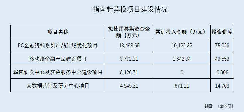 此外,上述项目均未发生变更,且尚处于建设期。而鉴于指南针审慎使用募集资金和新冠肺炎疫情影响,华南研发中心及客户服务中心建设项目建设进度有所放缓。