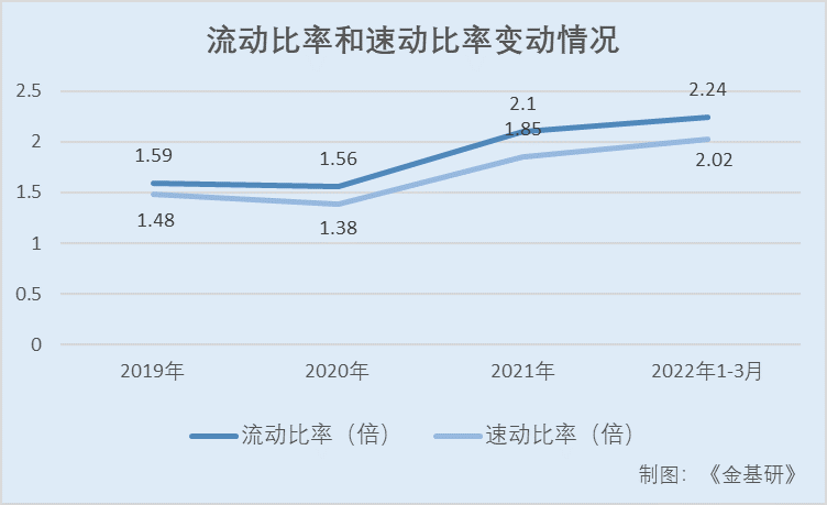 据招股书及东方财富Choice数据,2019-2021年及2022年1-3月,久祺股份资产负债率分别为55.36%、58.98%、44.2%、41.4%,流动比率分别为1.59、1.56、2.1、2.24,速动比率分别为1.48、1.38、1.85、2.02。