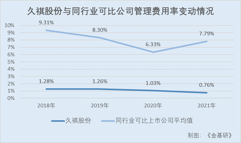 同期,据东方财富Choice数据和公开资讯观测站数据,久祺股份同行业可比上市久祺股份的管理费用率平均值为9.31%,8.3%,6.33%,7.79%。