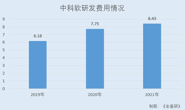 2019-2021年,中科软研发费用分别为6.18亿元、7.75亿元、8.43亿元,占同期营业收入比例分别为11.24%、13.4%、13.42%。