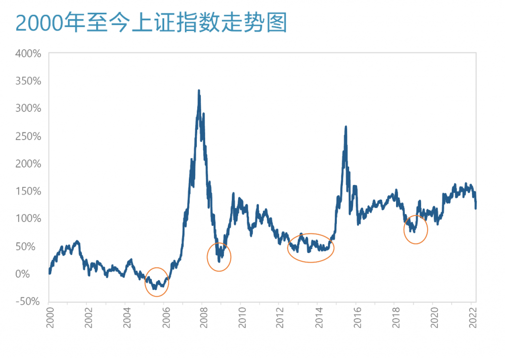 自2000年以来,上证指数共出现了4次大底,这些底部区域无一例外都呈现“W”型。这意味着,市场磨底并不是一蹴而就的,往往是个持续的过程。因此,想要实现精准抄底几乎是不可能的,而在相对底部的区域入场就成为了比较可行的做法。