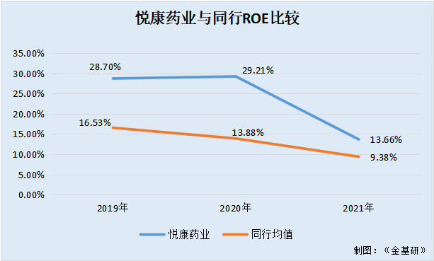 据东方财富Choice数据,2019-2021年,悦康药业的ROE分别为28.7%、29.21%、13.66%。