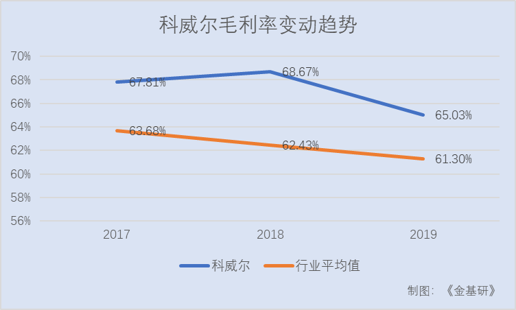 根据上述三家同行业上市公司的数据可知,2017-2019年,科威尔同行业上市公司主营业务毛利率的平均值分别为63.68%、62.43%、61.3%。