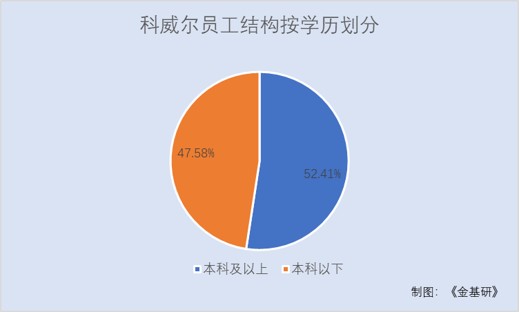 2019年,科威尔本科及以上学历的员工人数占比为52.41%。