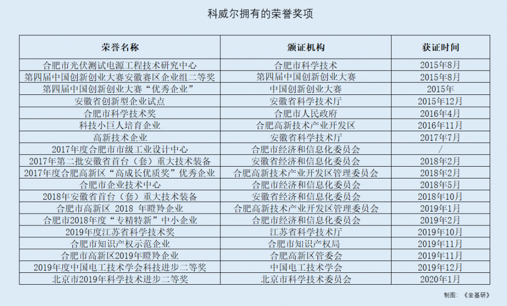 除此之外,截止2020年8月20日,科威尔获得的荣誉奖项共有19项。