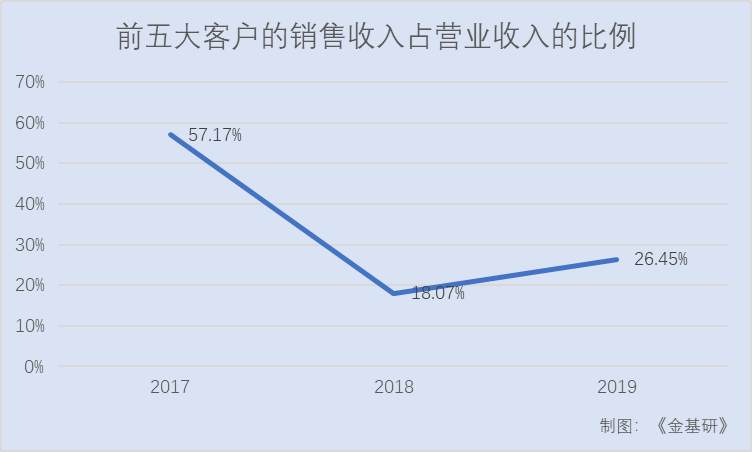 近年来,科威尔不断拓宽销售渠道,客户集中度呈下降趋势,对前五大客户不存在依赖。2017-2019年,科威尔向前五大客户的销售收入占当期营业收入的比例分别为 57.17%、18.07%、26.45%。