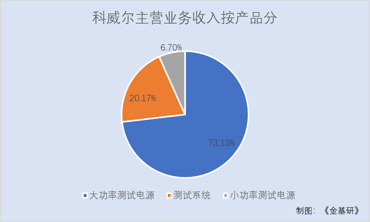 作为国内测试电源设备行业细分领域龙头企业。2019年,科威尔大功率测试电源、测试系统、小功率测试电源的收入占主营业务的比值分别为73.13%、20.17%、6.7%。