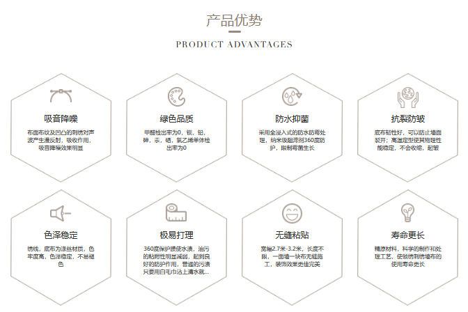 在国内人民的经济水平与购买力不断增长,对墙面装饰材料要求不断提高背景下,墙布吸音降噪、绿色品质、防水抑菌、抗裂防皱、色泽稳定、极易打理、无缝粘贴、寿命更长八大优势特点将更加凸显。同时,墙布产品的市场下探也会加强其相较于墙纸等墙面装饰产品的市场竞争力,对传统产品的替代趋势显著。