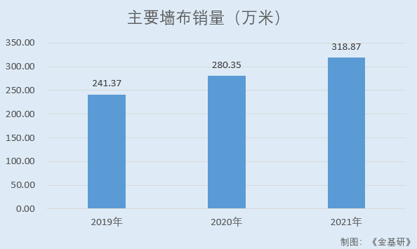 2019-2021年,联翔股份的主要墙布销量分别为241.37万米、280.35万米、318.87万米。