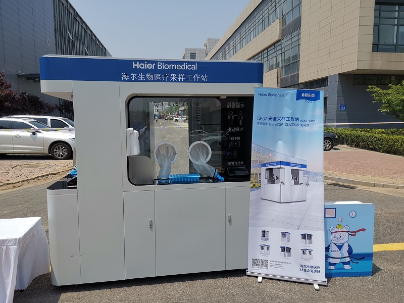 在海乐苗核酸快检车旁边,记者还看到了一位“老朋友”——海尔生物医疗安全采样工作站。只见这个占地四五平米的工作站内,正压新风系统、高效过滤系统、智能消杀系统、冷暖空调系统等一应俱全,既可以给采样工作者创设更安全舒适的采样环境,也能为市民带来融登记、采样、暂存、消杀于一体的便捷高效核酸采样服务。据介绍,它同样具备可移动、能够随需随设、部署快捷高效等特点,目前已在北京、上海、杭州、深圳等全国31个省份,200多个城市,500多个区县,5000余家医院、疾控、街道、社区卫生服务中心及其他人员密集区域应用,助力各地步行15分钟核酸“采样圈”构建,为数万名医护工作者保驾护航。
