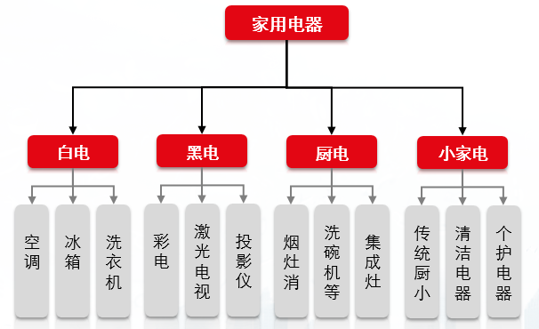 家电行业可以根据产品功能细分为白电、黑电、厨电以及小家电。小家电是近年来新涌现的细分销售赛道,表现出一定的可选消费属性,创新品类较多,景气度较高。而家电板块中的白电、黑电、厨电等产品具有较强的刚需属性,除常规的更新换代外,最主要的消费场景是新房装修,因此与新房销售高度相关,属于地产后周期板块,显著受益于地产销售的改善。在地产政策放松,提振地产需求,鼓励家电下乡和以旧换新的背景下,家电板块预期得到改善,迎来投资机会。