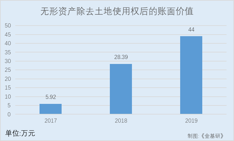 2017-2019年,惠云钛业的无形资产除去土地使用权后的账面价值分别为5.92万元、28.39万元、44万元。