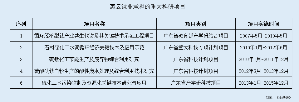 同期,惠云钛业主持或参与的省部级以上科研项目共有5项。而上述人才和技术优势,也为惠云钛业未来的持续发展奠定了坚实的基础。