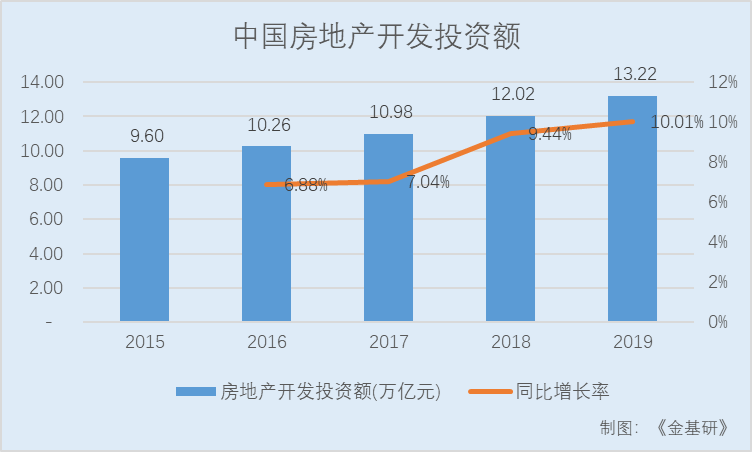 据招股书,2015-2019年,中国房地产开发投资额分别为9.6万亿元、10.26万亿元、10.98万亿元、12.02万亿元、13.22万亿元,2016-2019年分别同比增长6.88%、7.04%、9.44%、10.01%。