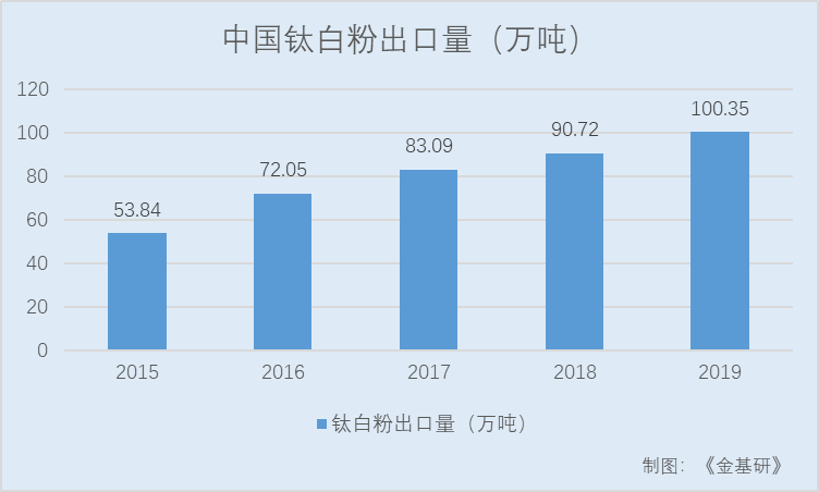 在全球涂料行业销售规模快速增长的情况下,中国钛白粉的出口量也在不断扩大。