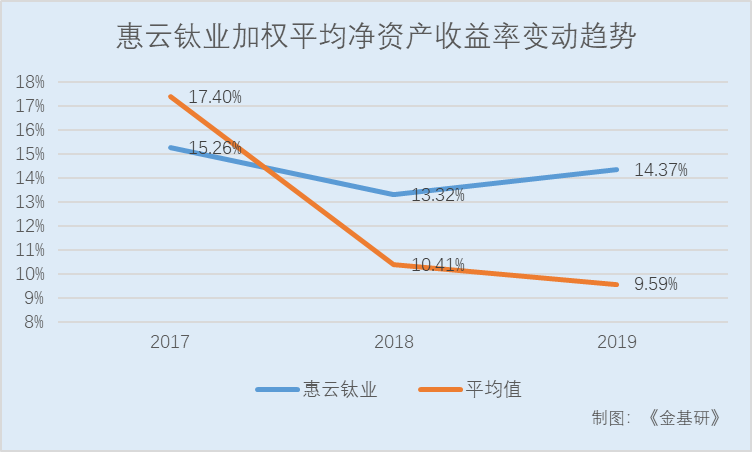 据招股书,2017-2019年,惠云钛业的加权平均净资产收益率分别为15.26%、13.32%、14.37%。