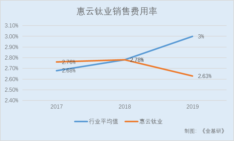 除此之外,2019年,惠云钛业的销售费用率也低于同行业平均水平。