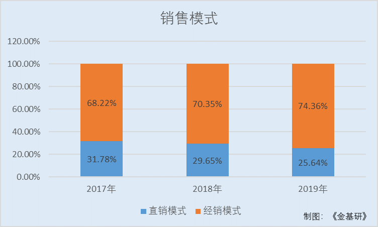 而北元集团的销售模式主要为直销和经销,2017-2019年,直销模式占主营业务收入的比重分别为31.78%、29.65%和25.64%,经销模式占主营业务收入的比重分别为68.22%、70.35%和74.36%。