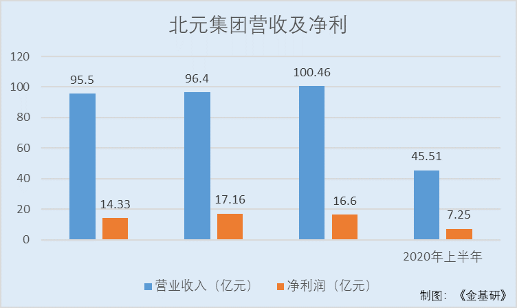 2017-2019年,北元集团实现营业收入分别95.5亿元、96.04亿元和100.46亿元,2018-2019年同比增长0.56%和4.61%;同期,北元集团实现净利润分别为14.33亿元、17.16亿元和16.6亿元,2018-2019年同比增长19.76%和-3.22%。