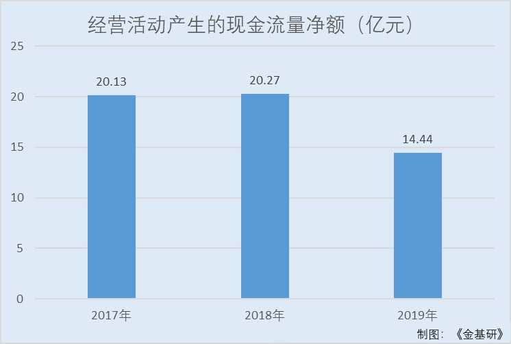 2017-2019年,北元集团经营活动产生的现金流量净额分别为20.13亿元、20.27亿元、14.44亿元。