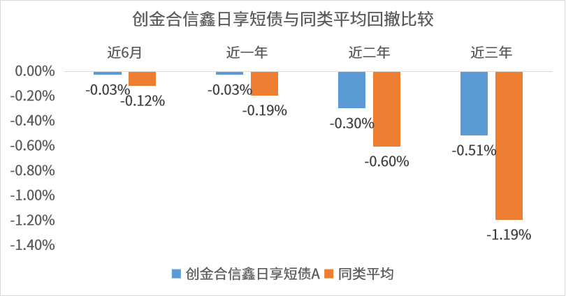 以创金合信鑫日享短债为例,这只产品在大类上属于纯债型基金,同时也属于债券型基金里面波动更小的短债。根据wind数据显示,创金合信鑫日享短债的回撤无论是在短期还是长期的区间内都低于同类平均水平,可谓抗震优选。