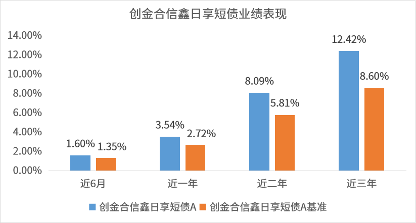 数据来源:创金合信基金,已经托管行复核,截至20220831,创金合信鑫日享短债成立于20190117,业绩比较基准:中证短债指数收益率,定期报告显示该产品A类份额2019年、2020年、2021年、今年以来(2022.1.1-2022.8.31)收益率分别为4.77%、3.31%、4.76%、2.28%,同期业绩基准分别为2.96%、2.50%、2.89%、1.41%。基金过往业绩不预示未来表现。