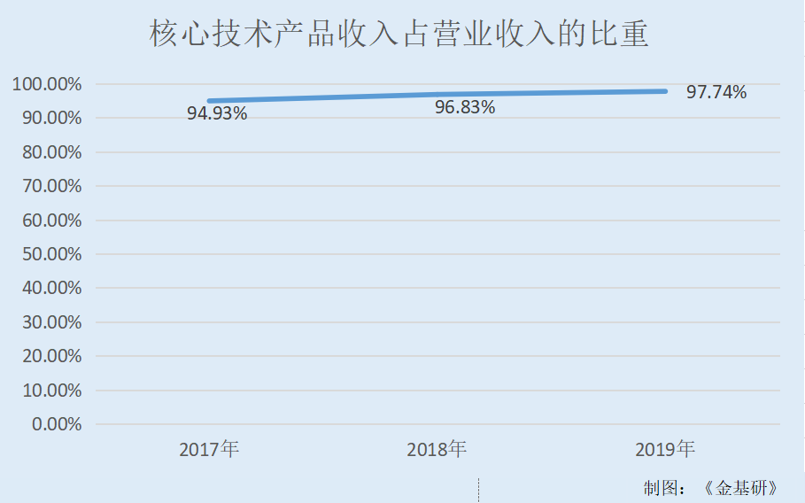 2017-2019年,万通液压的核心技术产品收入分别为2.33亿元、3.57亿元、3.07亿元,占营业收入比例分别为94.93%、96.83%、97.74%。