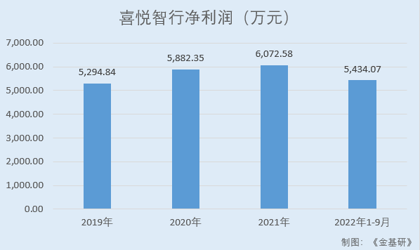 同期,喜悦智行的净利润分别为5,294.84万元、5,882.35万元、6,072.58万元、5,434.07万元,2020-2021及2022年1-9月分别同比增长11.10%、3.23%、16.72%。