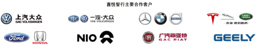 目前,喜悦智行积累了大众汽车、特斯拉、宝马、沃尔沃、比亚迪、长城、吉利、舍弗勒、博格华纳、美的、海尔、三一重工、淘生鲜、京东、申通等品牌的车主机厂及汽车零部件供应商、白色家电、工程机械、果蔬生鲜、快递物流等行业的众多优质客户。