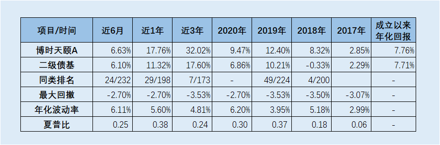 据银河证券数据,截至2020年7月31日,博时天颐债券A份额成立以来年化收益7.76%;过去三年收益32.02%,在同类173只基金中排名第7位。并且,该基金回撤控制优秀,过去三年最大回撤仅为-3.53%。