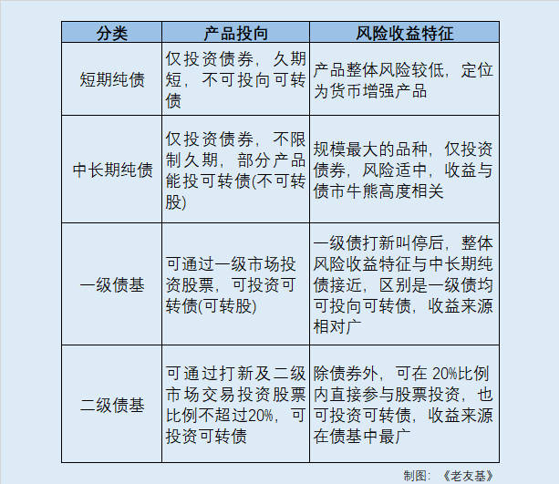 2、产品投向:纯债基金(短期、中长期)VS混合债基(一级、二级)
