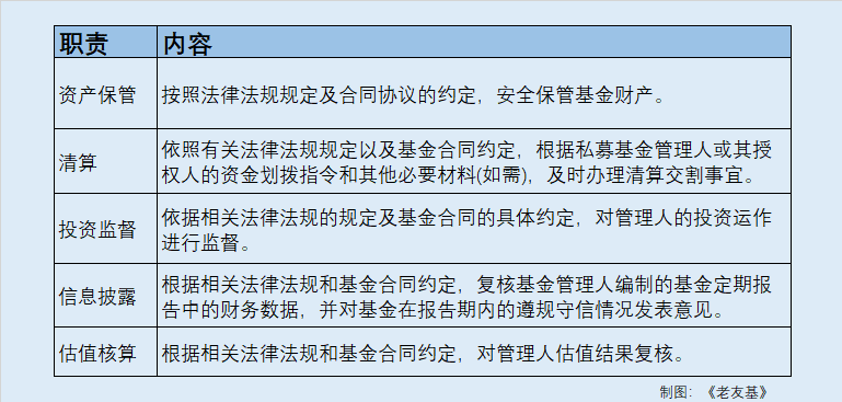什么是基金托管人?基金托管人又称基金保管人,是根据法律法规的要求,在证券投资基金运作中承担资产保管、交易监督、信息披露、资金清算与会计核算等相应职责的当事人。基金托管人是基金持有人权益的代表,通常由有实力的商业银行或信托投资公司担任。基金托管人与基金管理人签订托管协议。在托管协议规定的范围内履行自己的职责并收取一定的报酬。